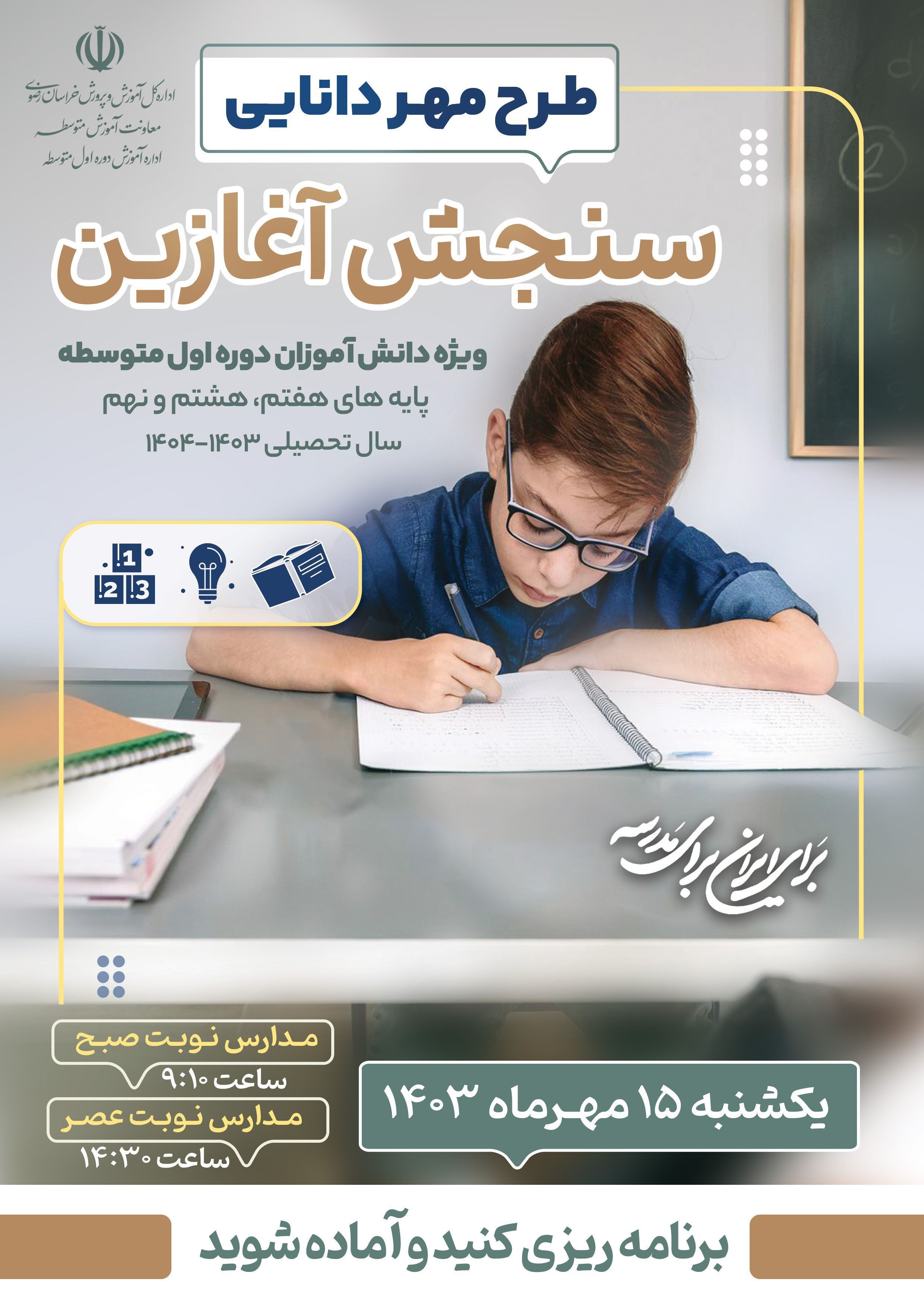 دانشآموزان پايه هاي هفتم،هشتم و نهم دوره اول متوسطه، مقرر است سنجش